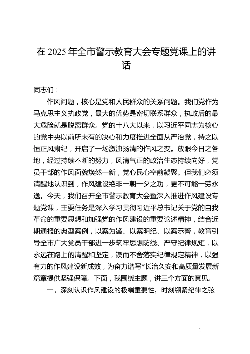 在2025年全市警示教育大會(huì)專(zhuān)題黨課上的講話