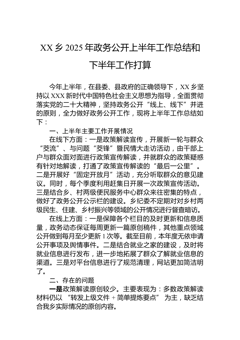 XX鄉(xiāng)2025年政務(wù)公開上半年工作總結(jié)和下半年工作打算