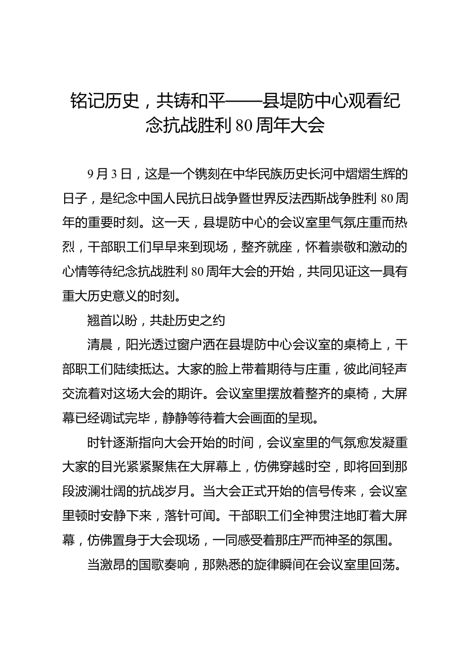銘記歷史,共鑄和平——縣堤防中心觀看紀念抗戰(zhàn)勝利80周年大會