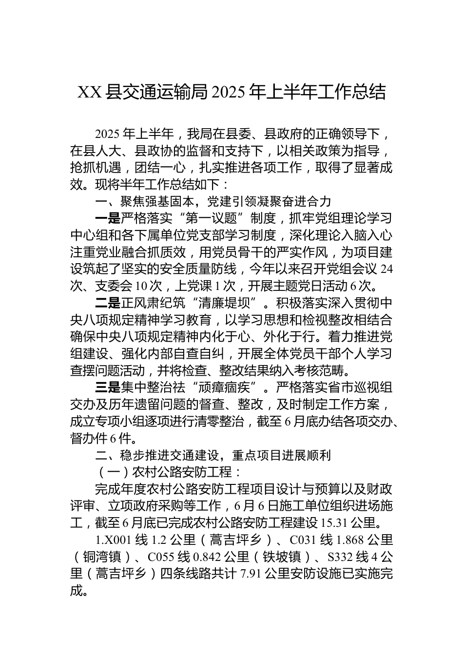 交通運輸局2025年上半年工作總結(jié)匯編(6篇)目錄1.XX縣交通運輸局2025年上半年工作總結(jié)22.區(qū)交通運輸局2025年上半年工作總結(jié)及下半年工作思路.......................................................................113.縣交通運輸局2025年上半年工作總結(jié)..............154.縣交通運輸局2025年上半年工作總結(jié)和下半年工作計劃.......................................................................225.縣交通運輸局2025年上半年工作總結(jié)及下半年工作計劃.......................................................................266.縣交通運輸局2025年上半年重...