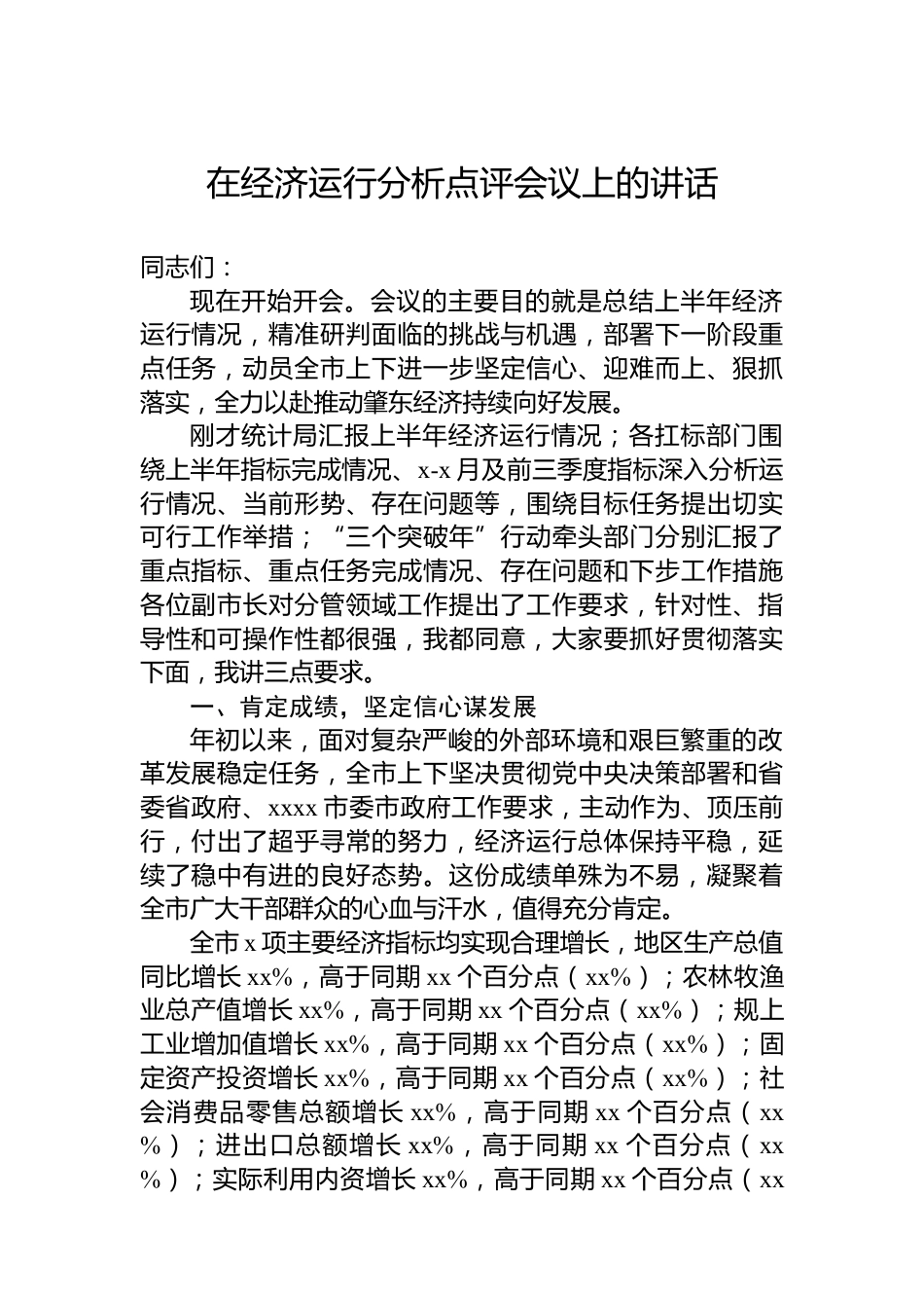 在經(jīng)濟(jì)運(yùn)行分析點(diǎn)評會議上的講話(2篇)