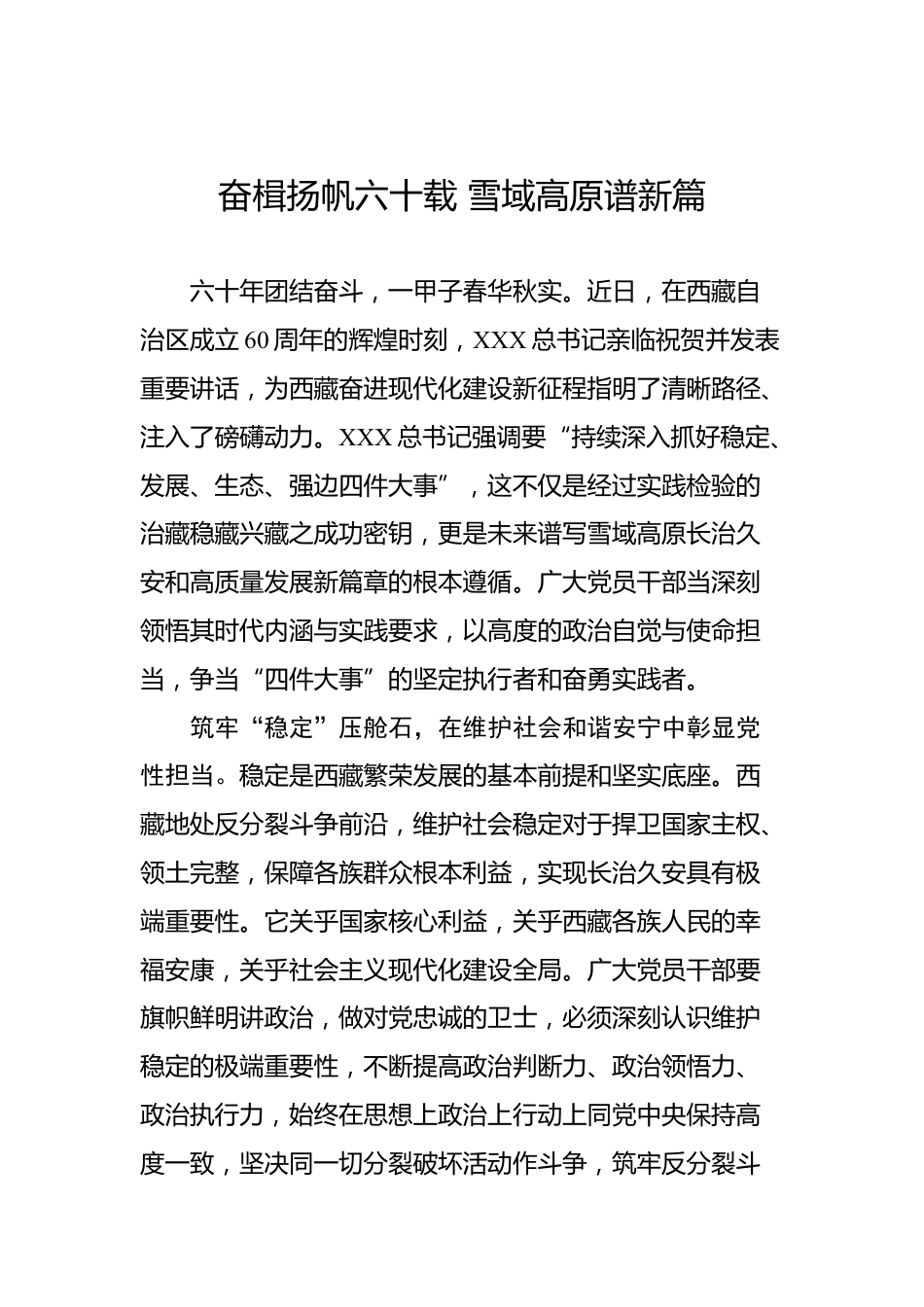西藏自治區(qū)成立60周年文稿匯編(7篇)