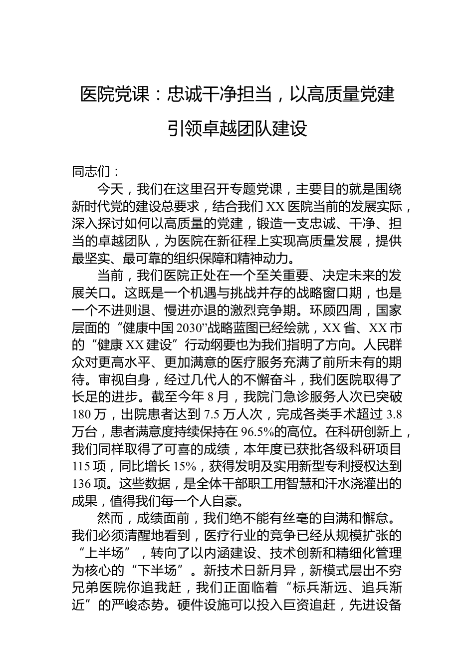 醫(yī)院黨課:忠誠干凈擔(dān)當(dāng),以高質(zhì)量黨建引領(lǐng)卓越團(tuán)隊建設(shè)