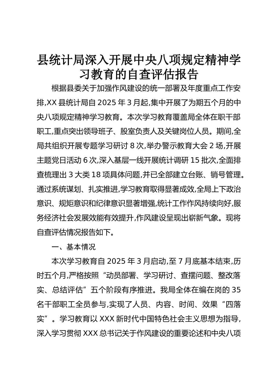 縣統(tǒng)計局深入開展中央八項規(guī)定精神學(xué)習(xí)教育的自查評估報告