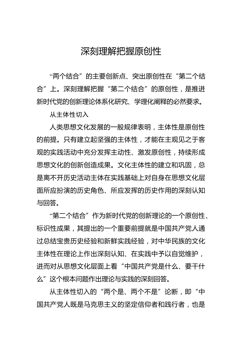 深刻理解把握原創(chuàng)性