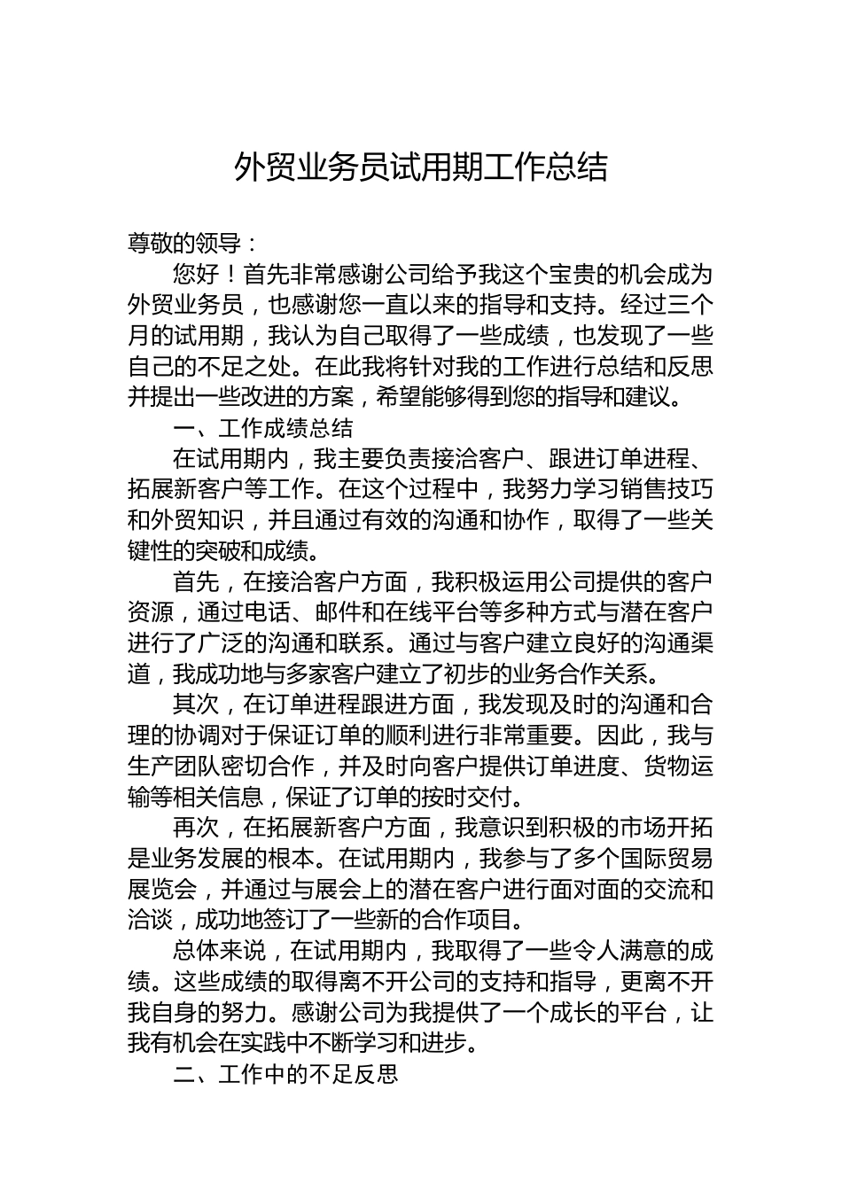 外貿(mào)業(yè)務(wù)員試用期工作總結(jié)