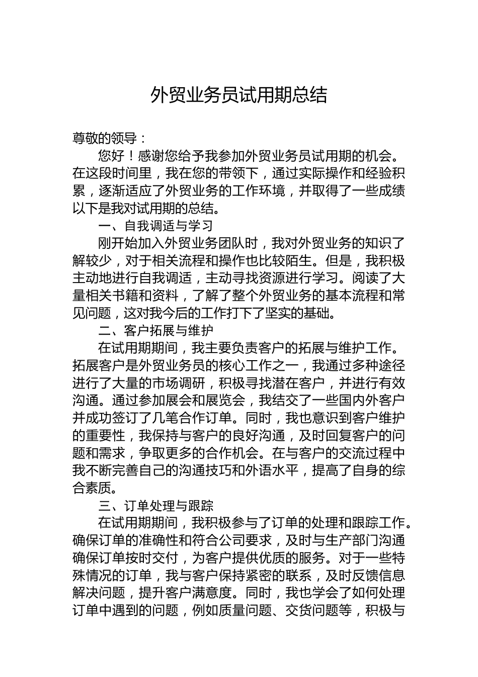 外貿(mào)業(yè)務(wù)員試用期總結(jié)