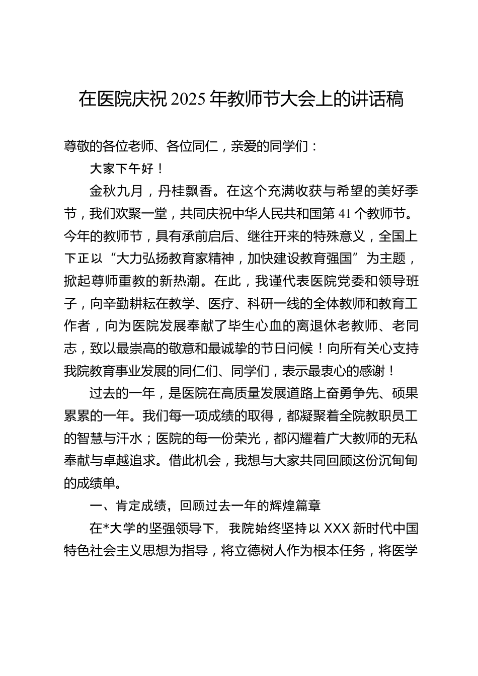 在醫(yī)院慶祝2025年教師節(jié)大會上的講話稿