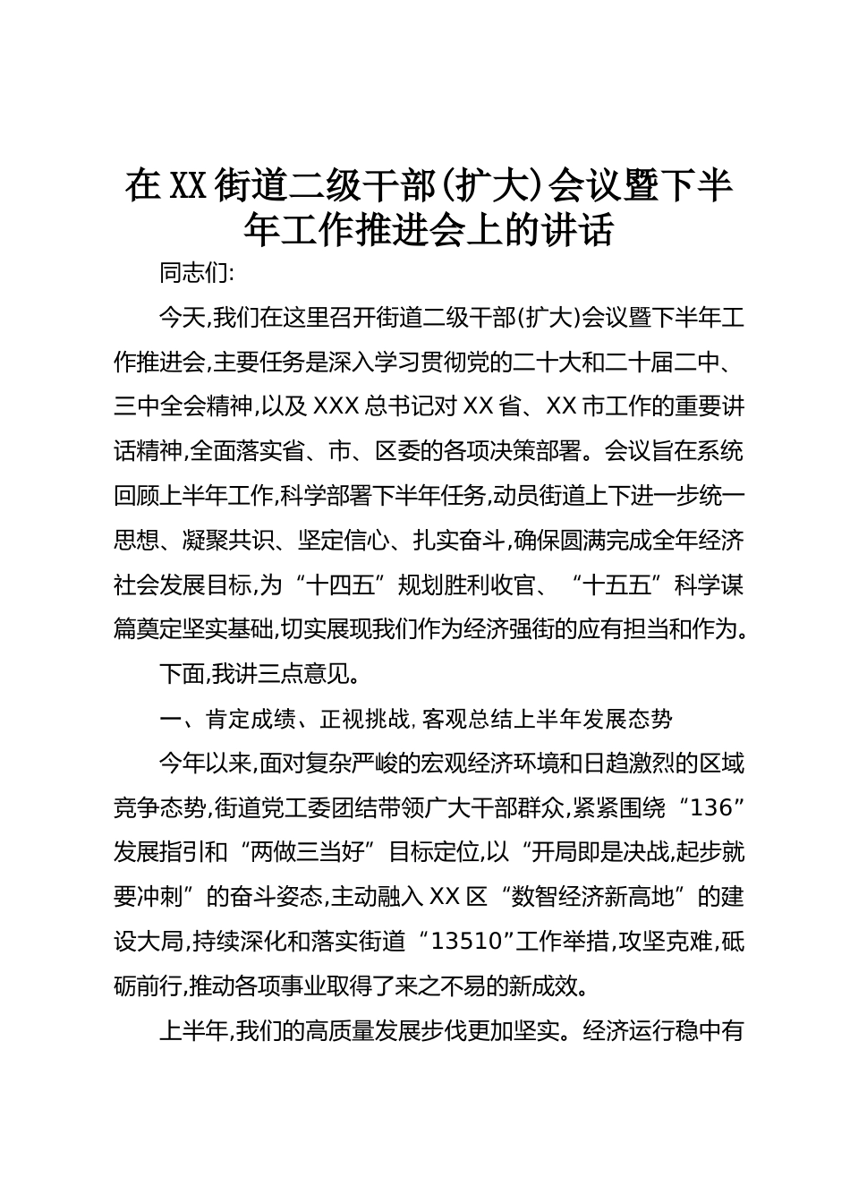 在XX街道二級干部(擴(kuò)大)會議暨下半年工作推進(jìn)會上的講話VIP免費(fèi)