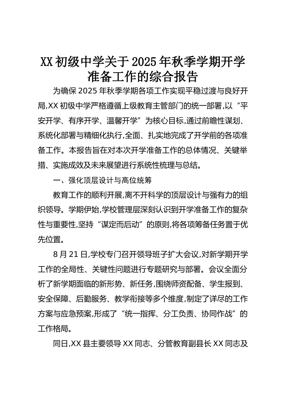 XX初級中學關于2025年秋季學期開學準備工作的綜合報告