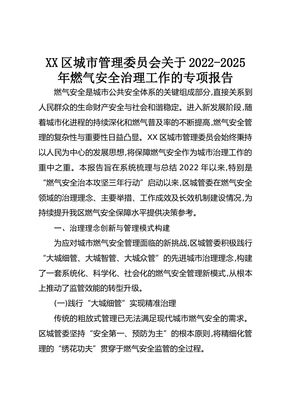 XX區(qū)城市管理委員會關(guān)于2022-2025年燃氣安全治理工作的專項報告