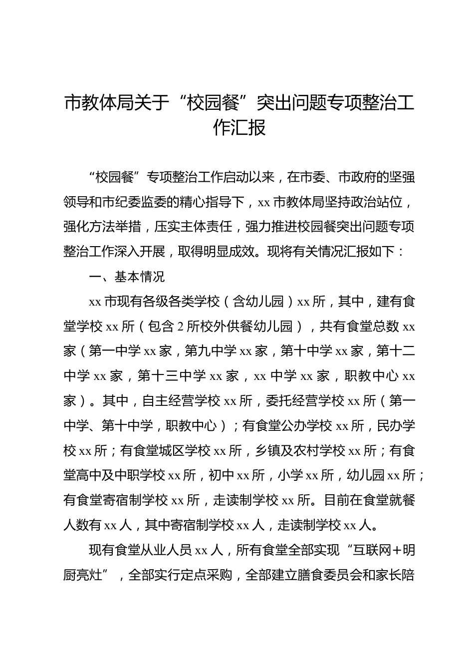市教體局關(guān)于“校園餐”突出問題專項(xiàng)整治工作匯報(bào)