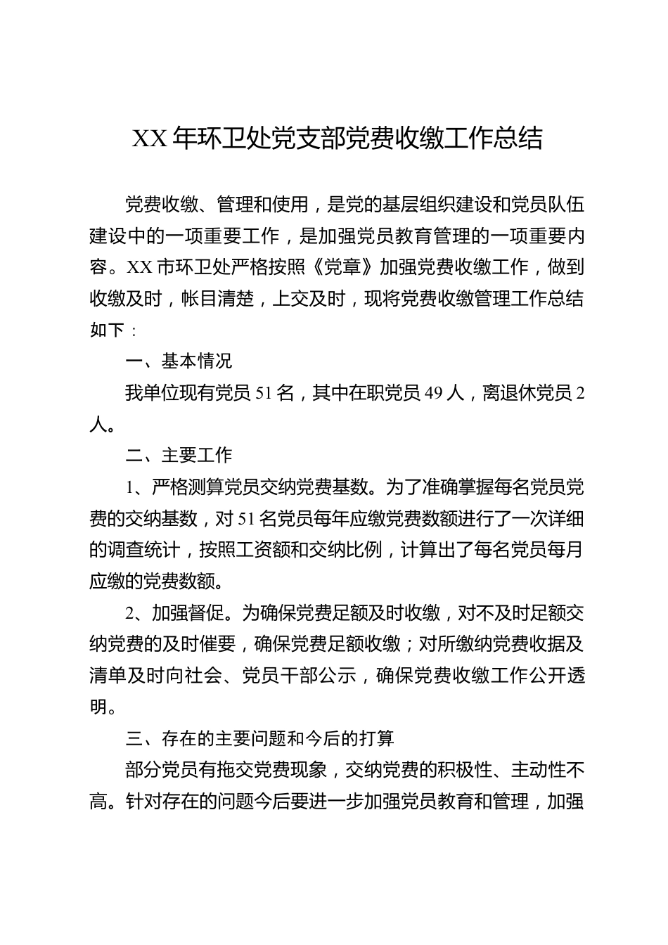 XX年環(huán)衛(wèi)處黨支部黨費(fèi)收繳工作總結(jié)