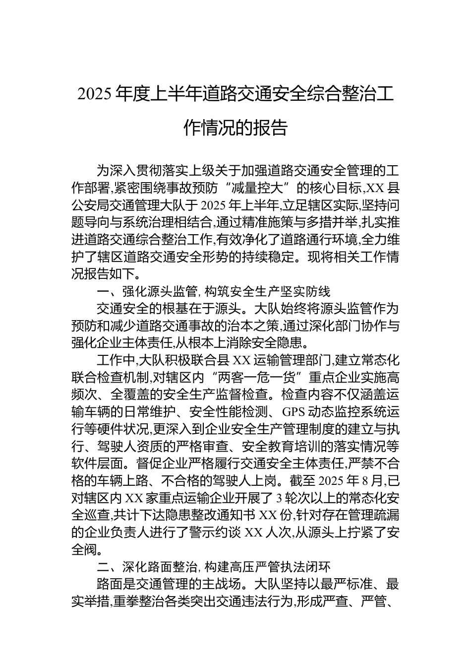 2025年度上半年道路交通安全綜合整治工作情況的報告