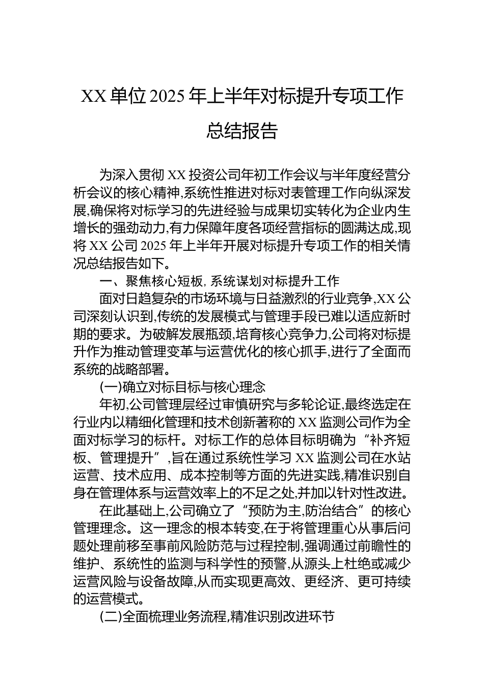 XX單位2025年上半年對(duì)標(biāo)提升專項(xiàng)工作總結(jié)報(bào)告