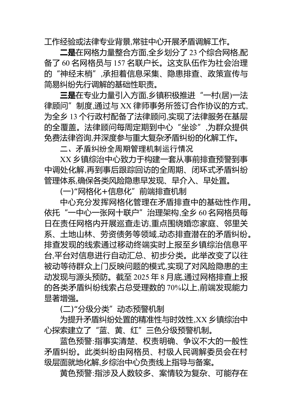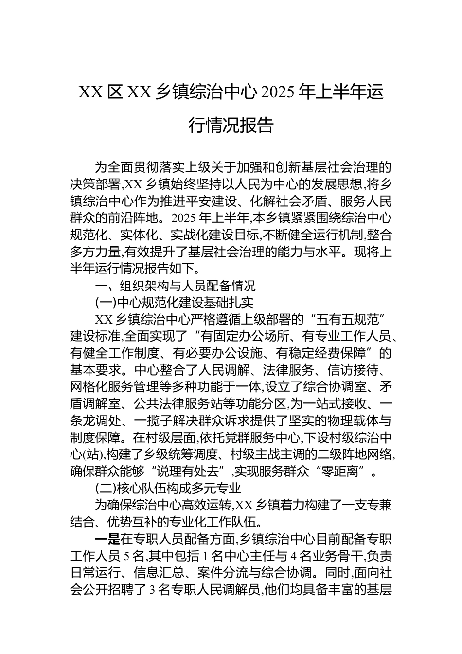 XX區(qū)XX鄉(xiāng)鎮(zhèn)綜治中心2025年上半年運(yùn)行情況報(bào)告
