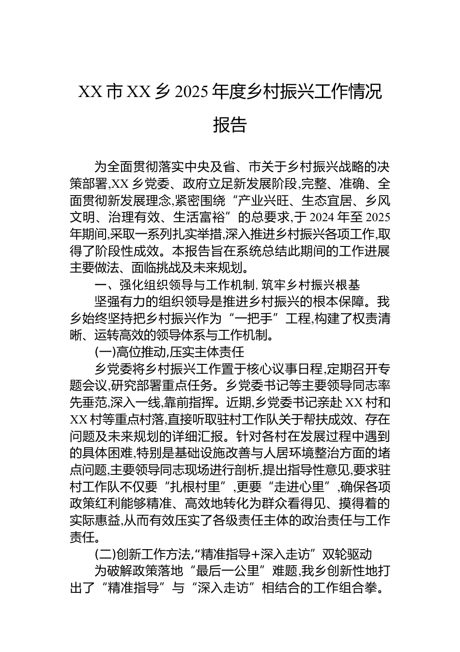 XX市XX鄉(xiāng)2025年度鄉(xiāng)村振興工作情況報告