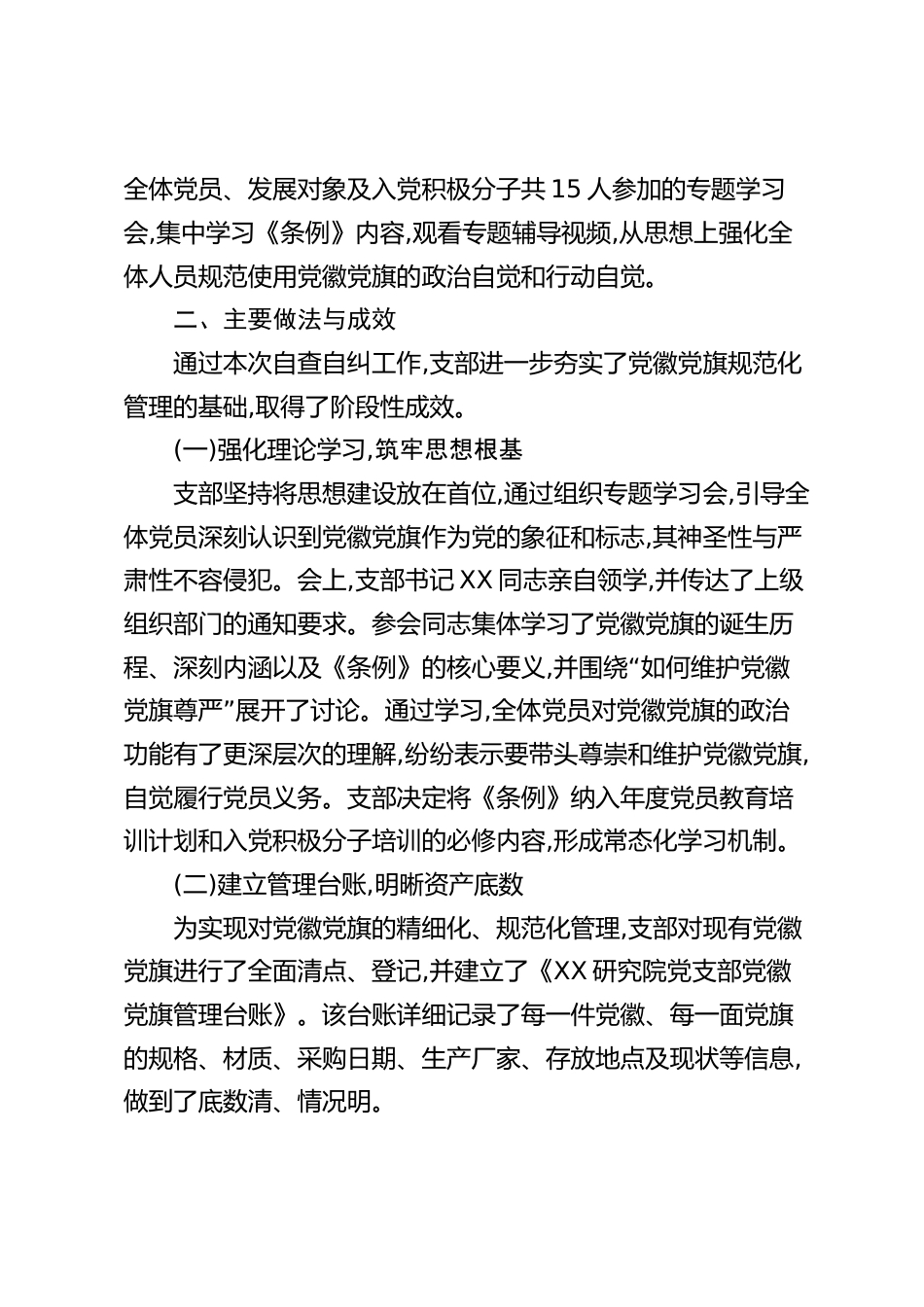 XX研究院黨支部關(guān)于規(guī)范使用黨徽黨旗自查自糾情況的報(bào)告