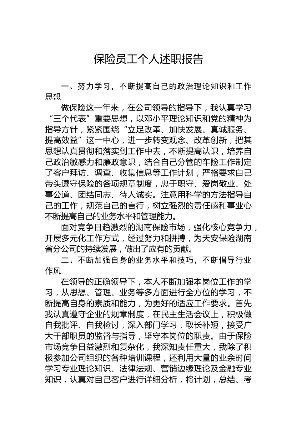 保險員工個人述職報告匯編(10篇)目錄1.保險員工個人述職報告22.保險員工個人述職報告......................................63.保險員工個人述職報告....................................114.保險員工個人述職報告....................................135.保險員工個人述職報告....................................196.保險員工個人述職報告....................................257.保險員工個人述職報告....................................318.保險員工個人述職報告....................................359.保險員工個人述職報告...............................
