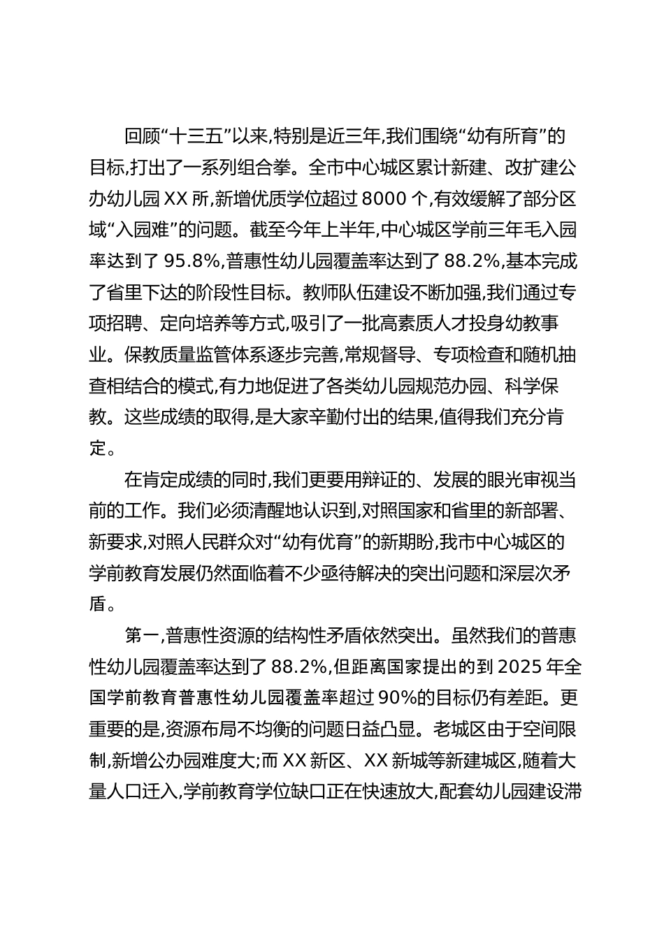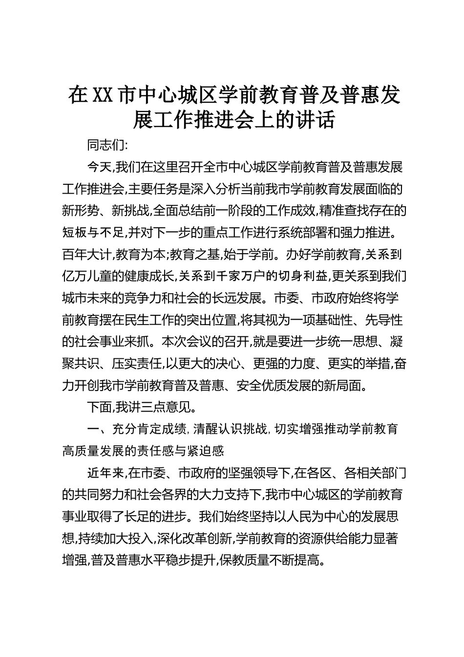在XX市中心城區(qū)學(xué)前教育普及普惠發(fā)展工作推進(jìn)會上的講話