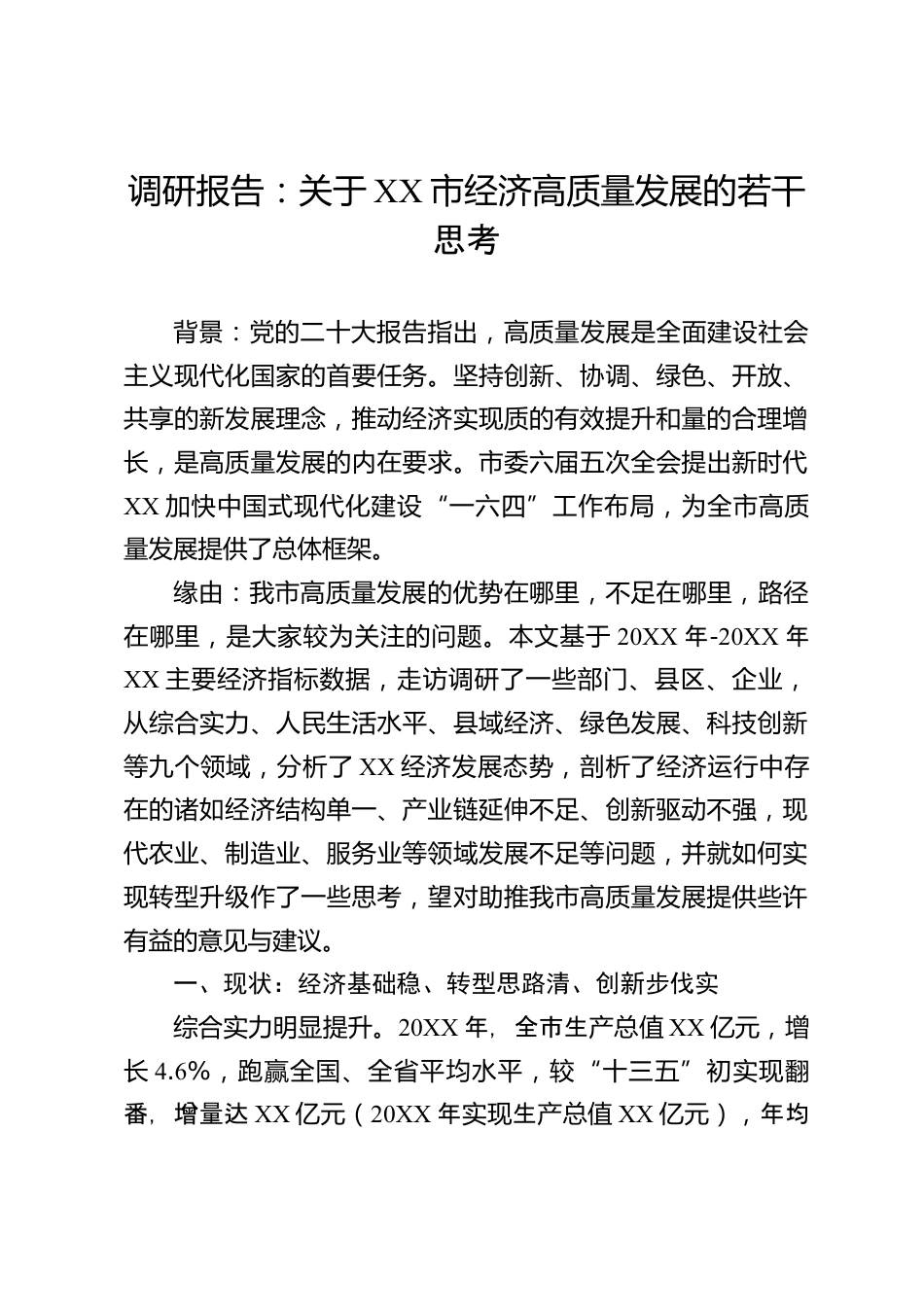 調(diào)研報告:關(guān)于XX市經(jīng)濟(jì)高質(zhì)量發(fā)展的若干思考