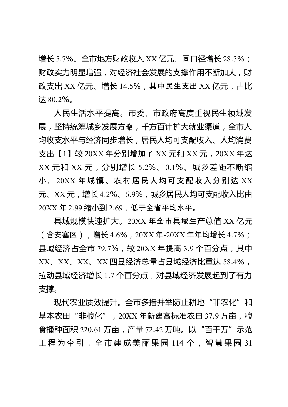 調(diào)研報告:關(guān)于XX市經(jīng)濟(jì)高質(zhì)量發(fā)展的若干思考背景:黨的二十大報告指出,高質(zhì)量發(fā)展是全面建設(shè)社會主義現(xiàn)代化國家的首要任務(wù)。堅持創(chuàng)新、協(xié)調(diào)、綠色、開放、共享的新發(fā)展理念,推動經(jīng)濟(jì)實現(xiàn)質(zhì)的有效提升和量的合理增長,是高質(zhì)量發(fā)展的內(nèi)在要求。市委六屆五次全會提出新時代XX加快中國式現(xiàn)代化建設(shè)“一六四”工作布局,為全市高質(zhì)量發(fā)展提供了總體框架。緣由:我市高質(zhì)量發(fā)展的優(yōu)勢在哪里,不足在哪里,路徑在哪里,是大家較為關(guān)注的問題。本文基于20XX年-20XX年XX主要經(jīng)濟(jì)指標(biāo)數(shù)據(jù),走訪調(diào)研了一些部門、縣區(qū)、企業(yè),從綜合實力、人民生活水平、縣域經(jīng)濟(jì)、綠色發(fā)展、科...