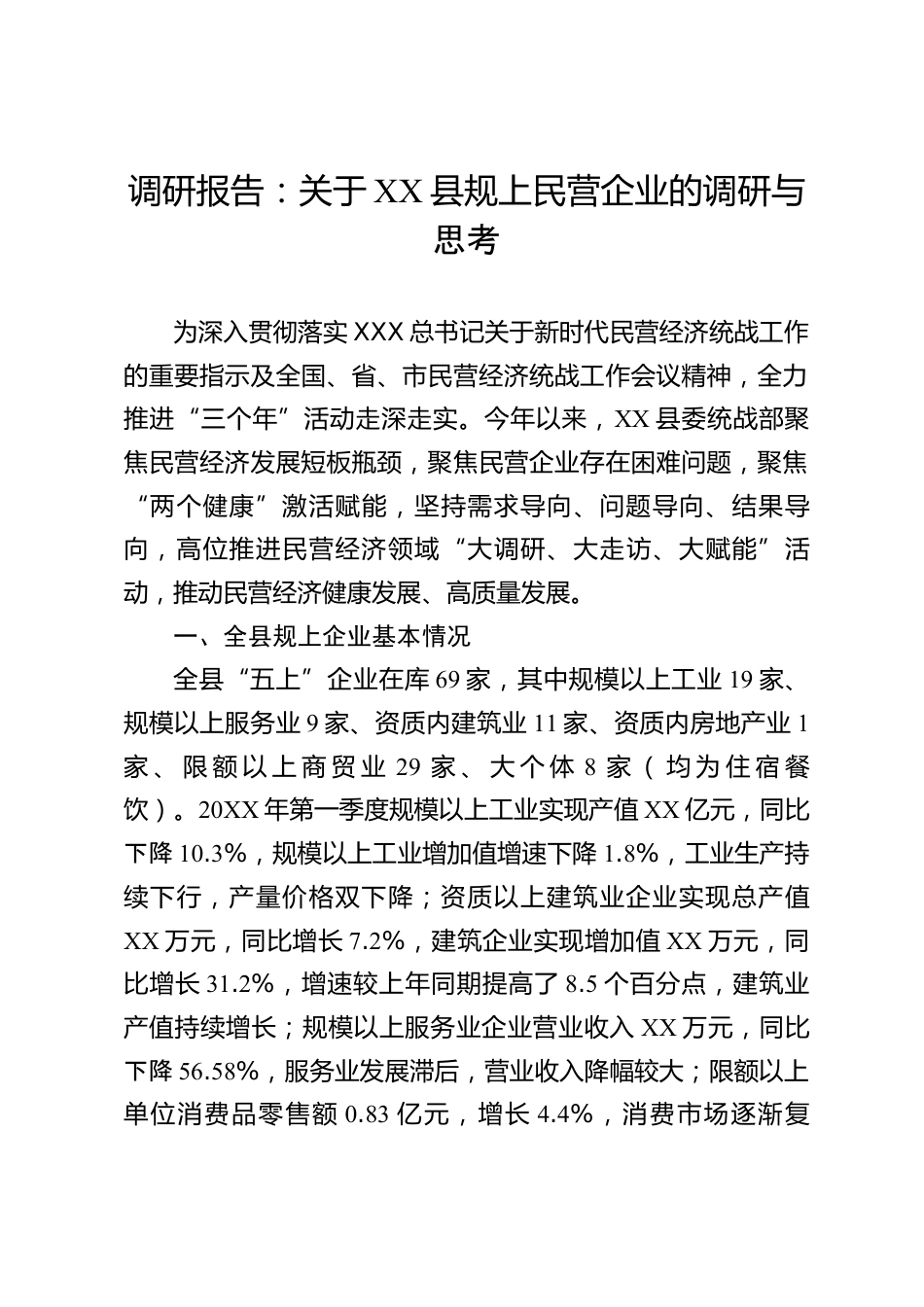 調(diào)研報(bào)告:關(guān)于XX縣規(guī)上民營企業(yè)的調(diào)研與思考