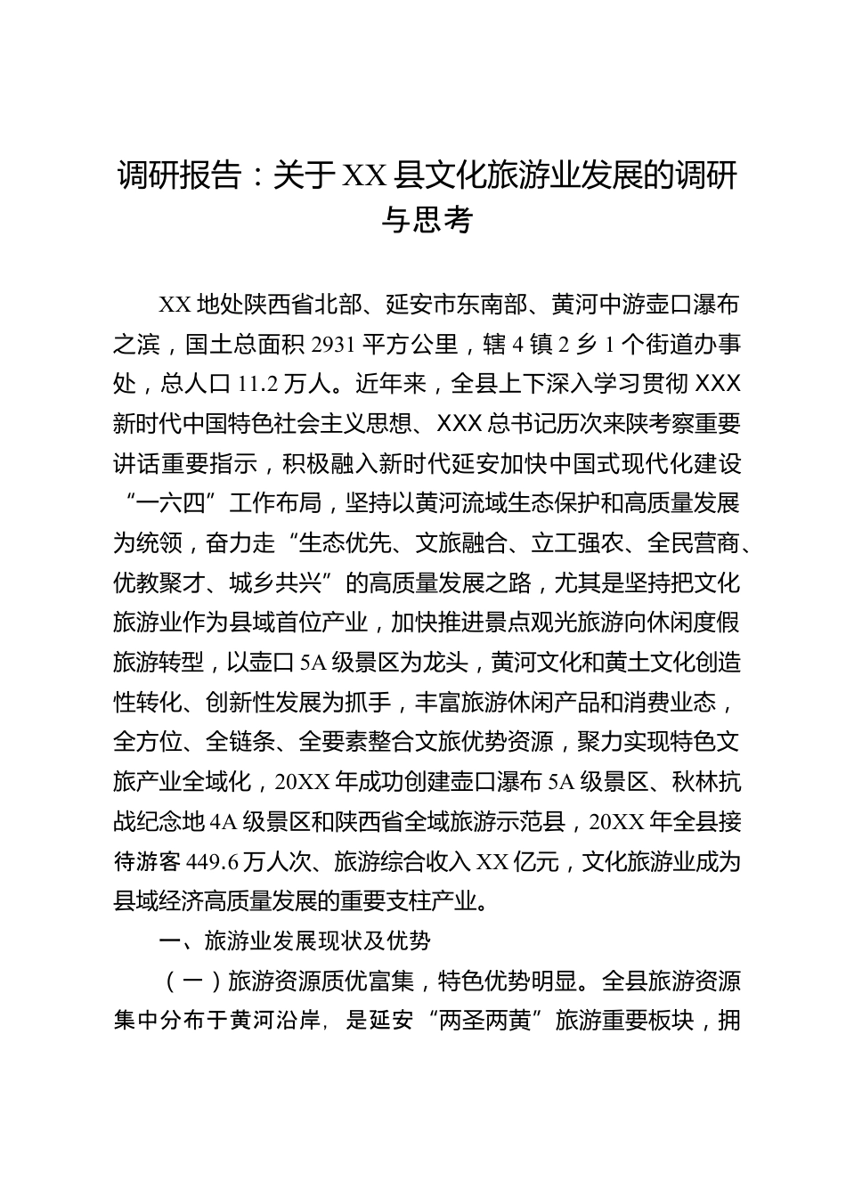 調(diào)研報告:關于XX縣文化旅游業(yè)發(fā)展的調(diào)研與思考