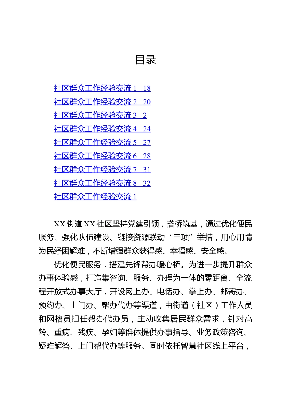 社區(qū)群眾工作經(jīng)驗(yàn)交流匯編