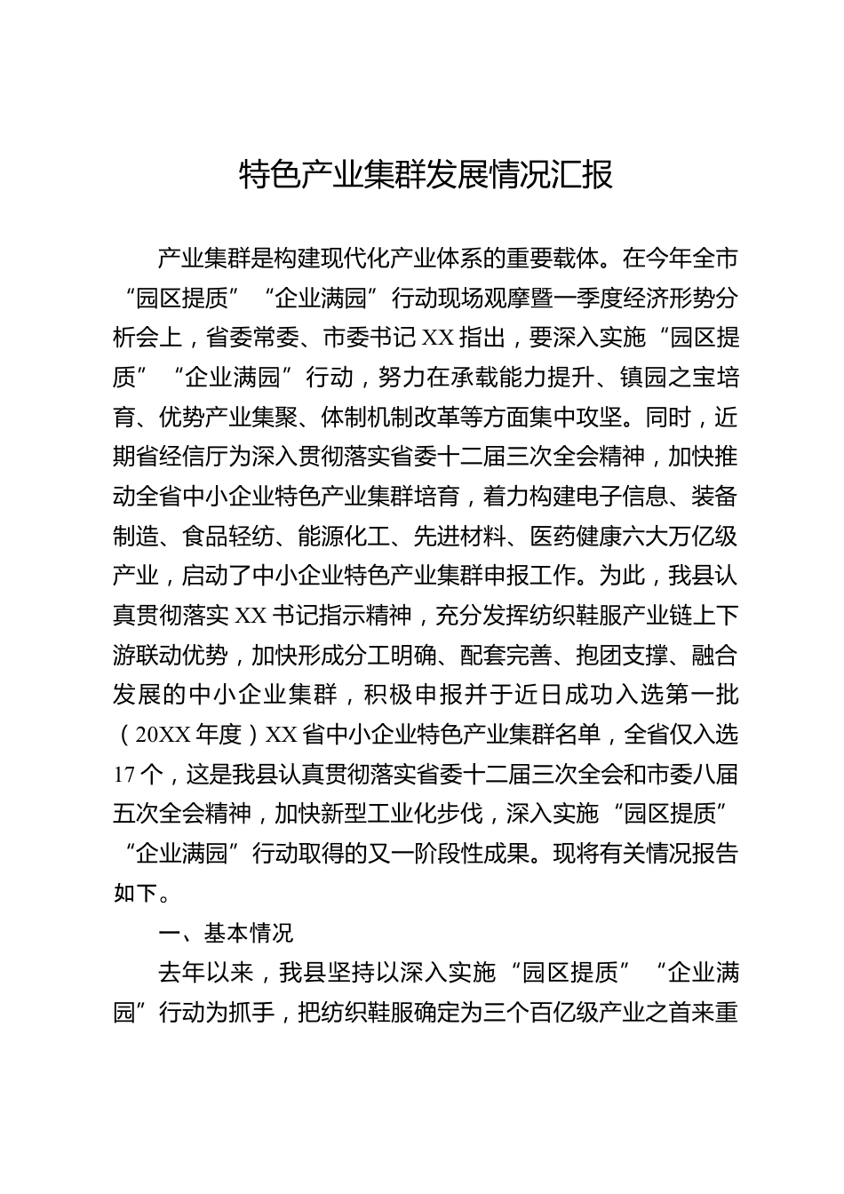 特色產(chǎn)業(yè)集群情況匯報(bào)