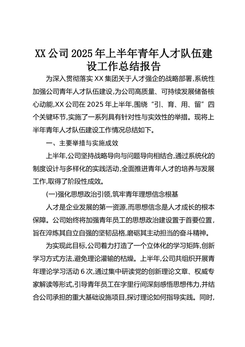 XX公司2025年上半年青年人才隊(duì)伍建設(shè)工作總結(jié)報(bào)告