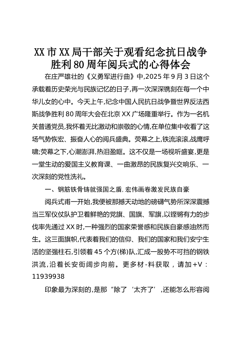 XX市XX局干部關(guān)于觀看紀(jì)念抗日戰(zhàn)爭勝利80周年閱兵式的心得體會(huì)VIP免費(fèi)