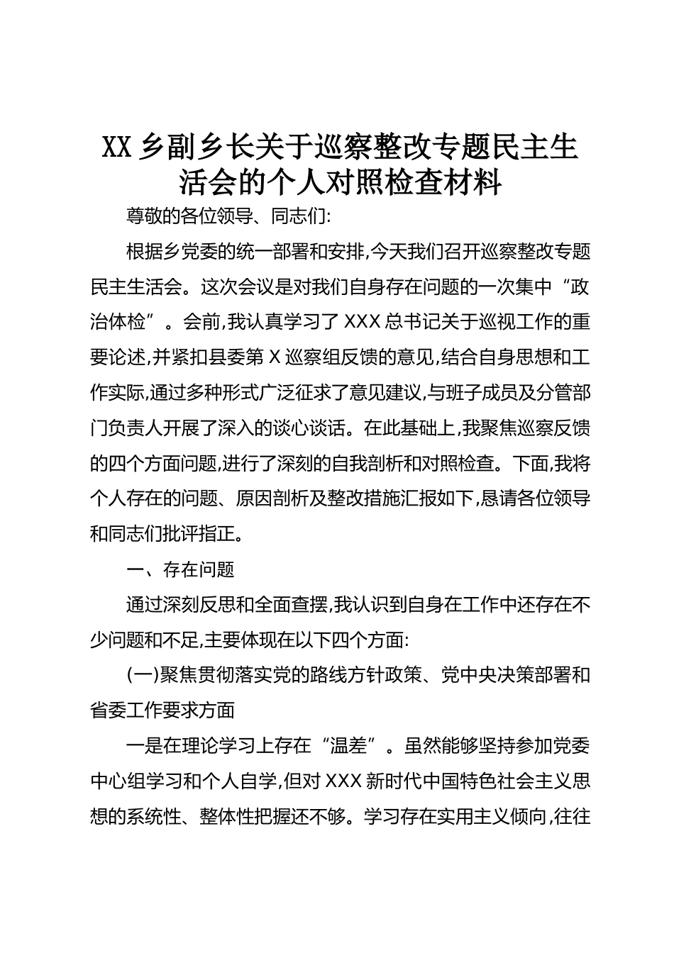 XX鄉(xiāng)副鄉(xiāng)長(zhǎng)關(guān)于巡察整改專題民主生活會(huì)的個(gè)人對(duì)照檢查材料