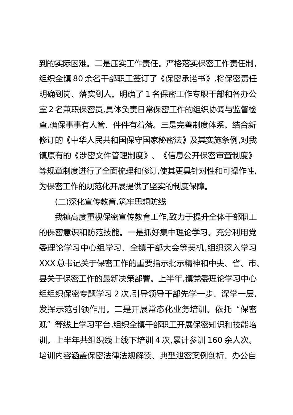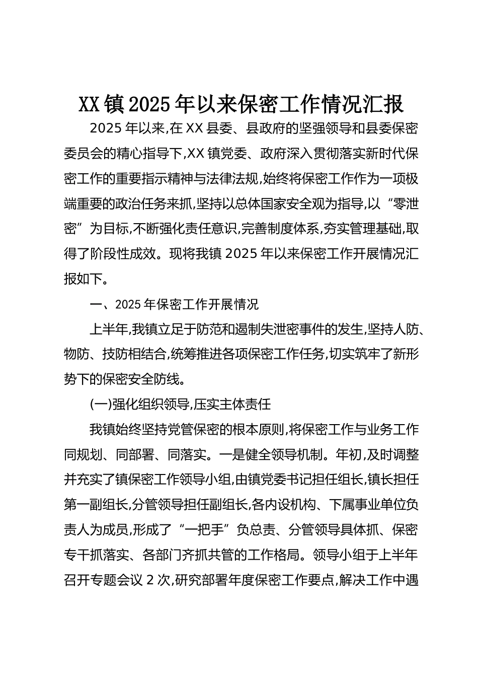 XX鎮(zhèn)2025年以來(lái)保密工作情況匯報(bào)
