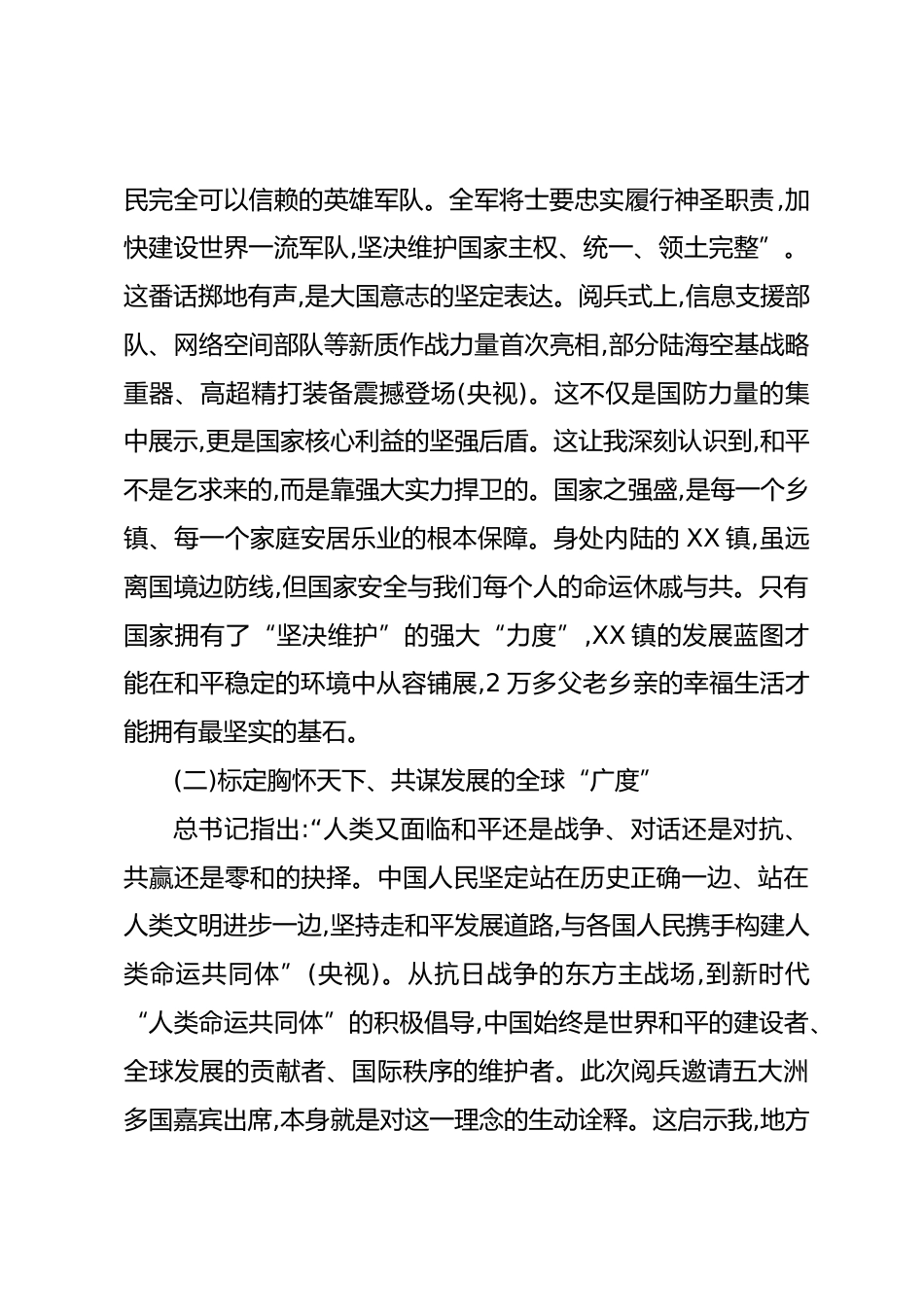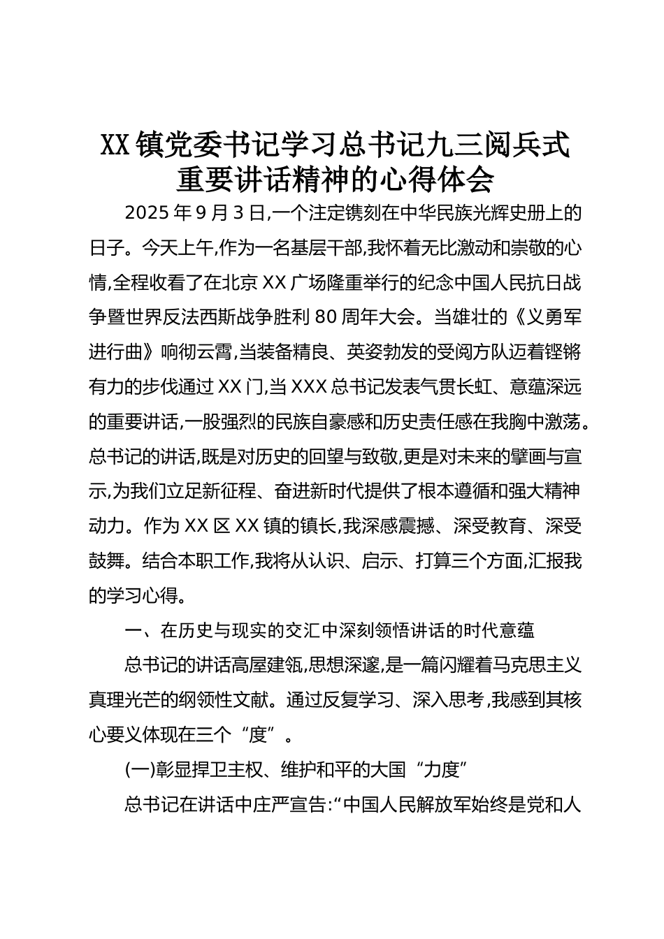 XX鎮(zhèn)黨委書記學(xué)習(xí)總書記九三閱兵式重要講話精神的心得體會VIP免費