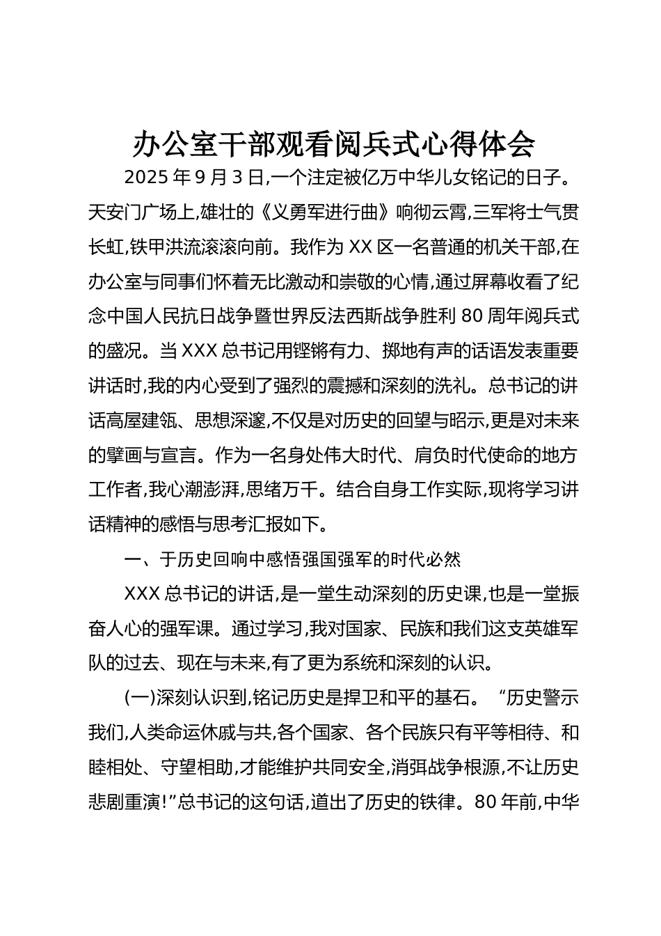 辦公室干部觀看閱兵式心得體會(huì)VIP免費(fèi)