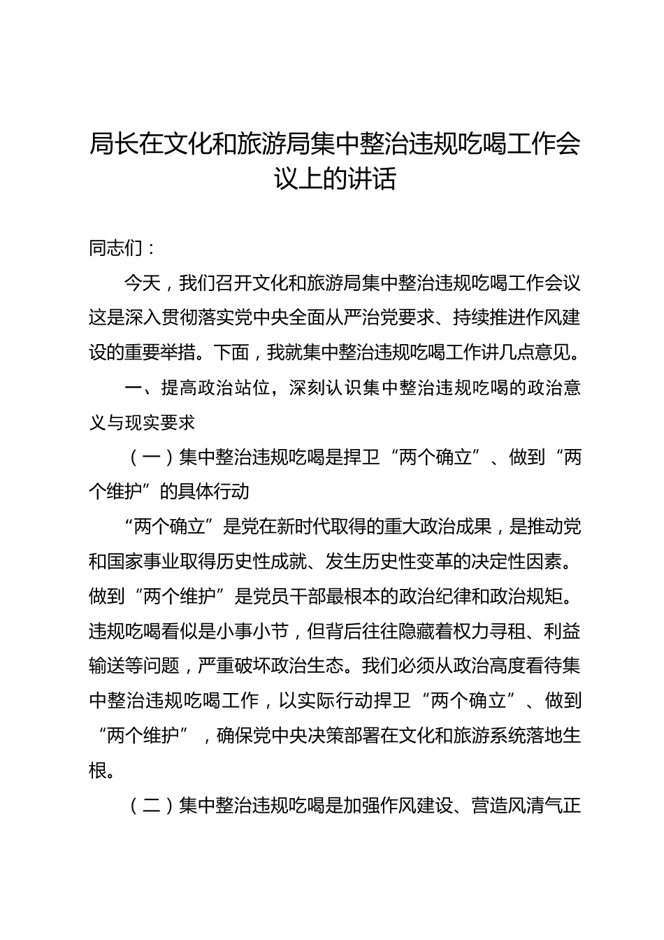 局長(zhǎng)在文化和旅游局集中整治違規(guī)吃喝工作會(huì)議上的講話