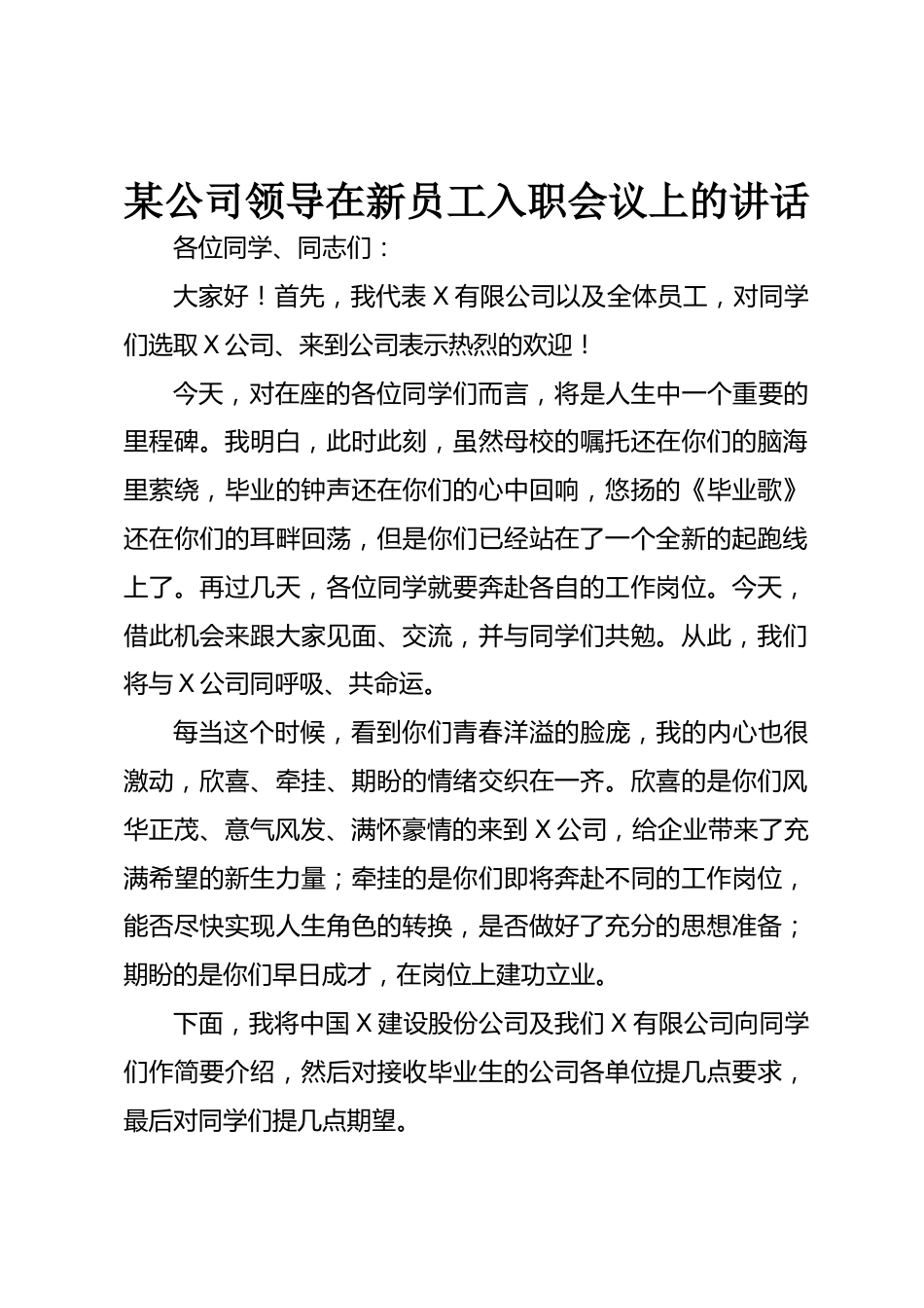 某公司領(lǐng)導(dǎo)在新員工入職會(huì)議上的講話VIP免費(fèi)