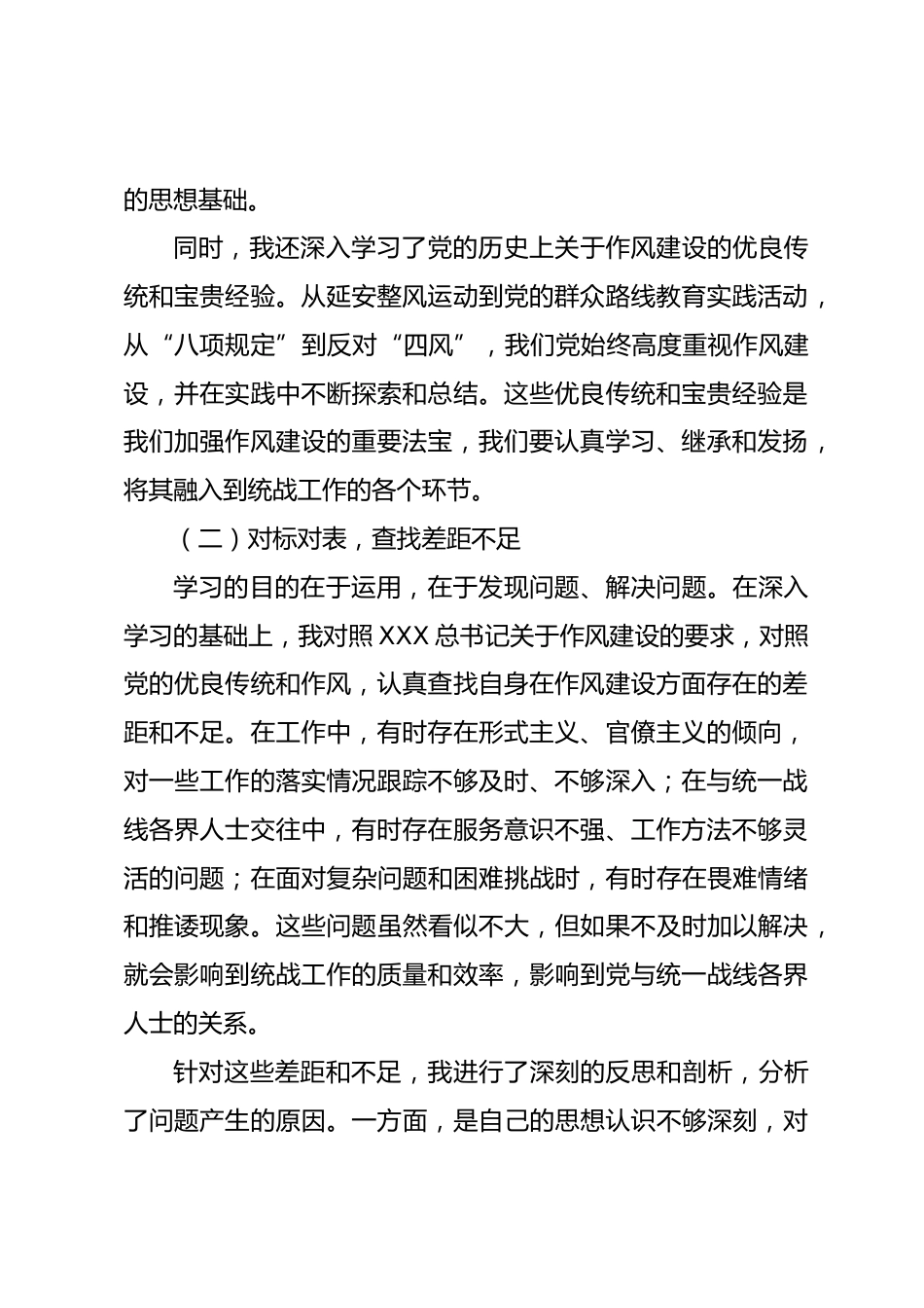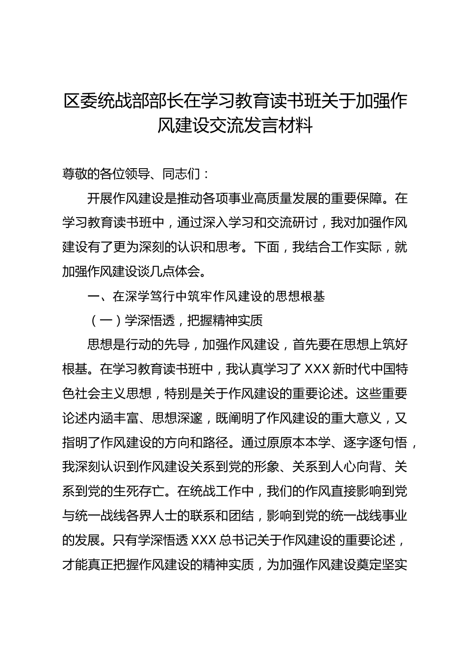 區(qū)委統(tǒng)戰(zhàn)部部長在學(xué)習(xí)教育讀書班關(guān)于加強(qiáng)作風(fēng)建設(shè)交流發(fā)言材料