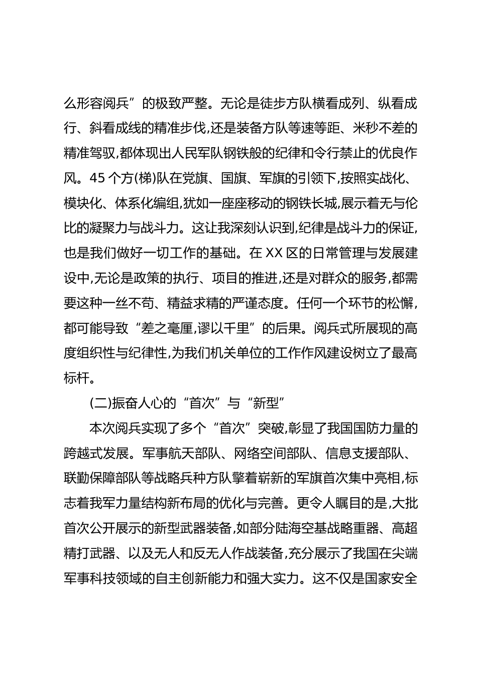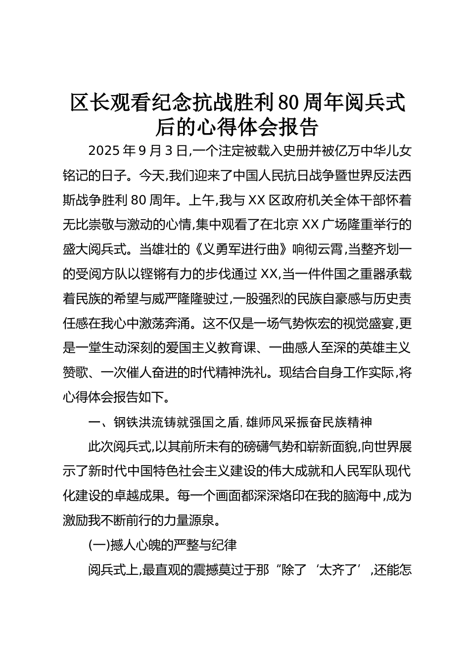 區(qū)長觀看紀念抗戰(zhàn)勝利80周年閱兵式后的心得體會報告