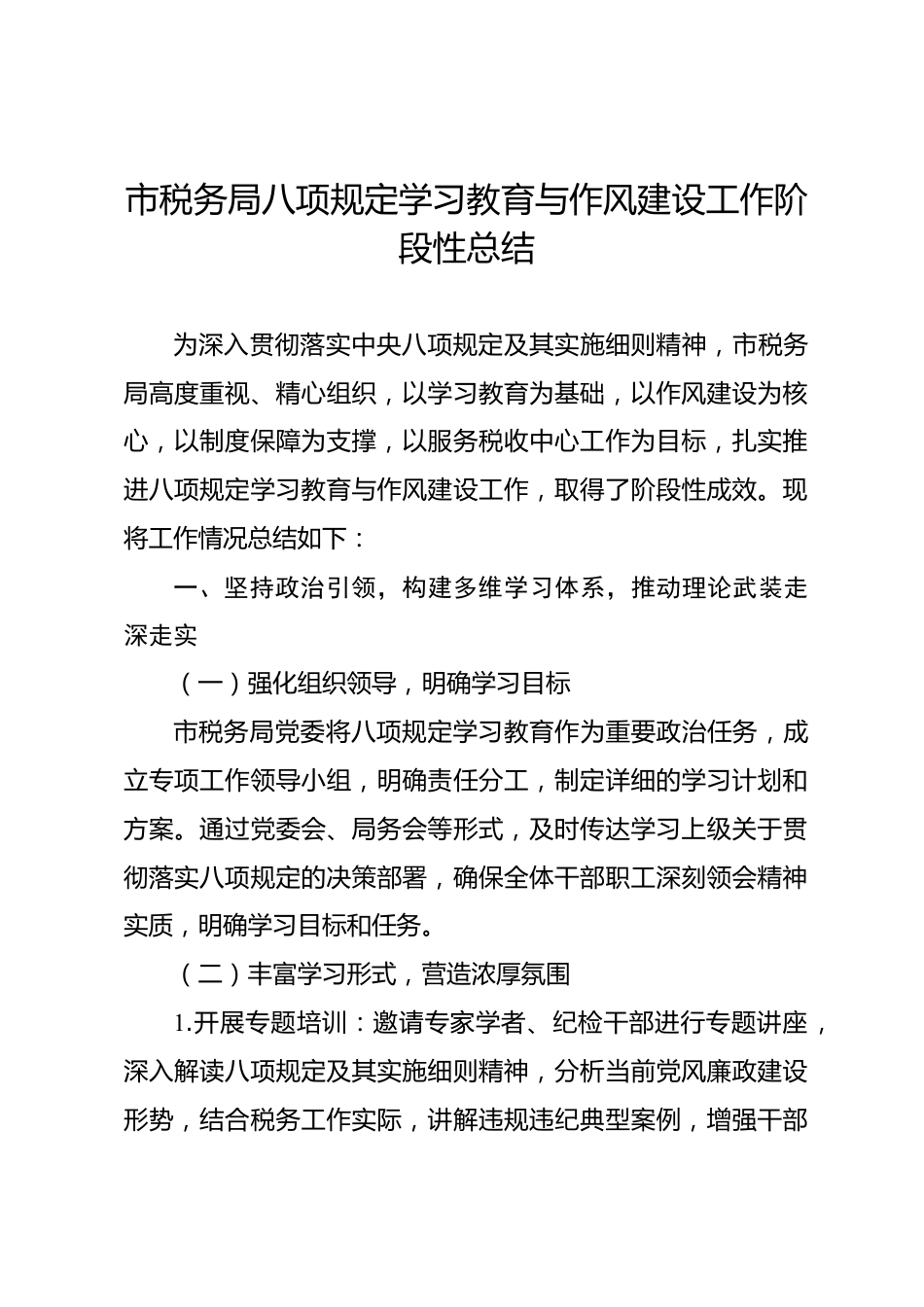 市稅務(wù)局八項(xiàng)規(guī)定學(xué)習(xí)教育與作風(fēng)建設(shè)工作階段性總結(jié)