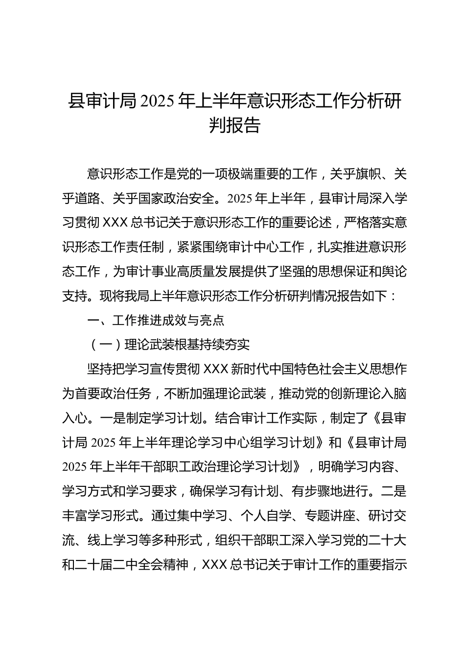 縣審計局2025年上半年意識形態(tài)工作分析研判報告