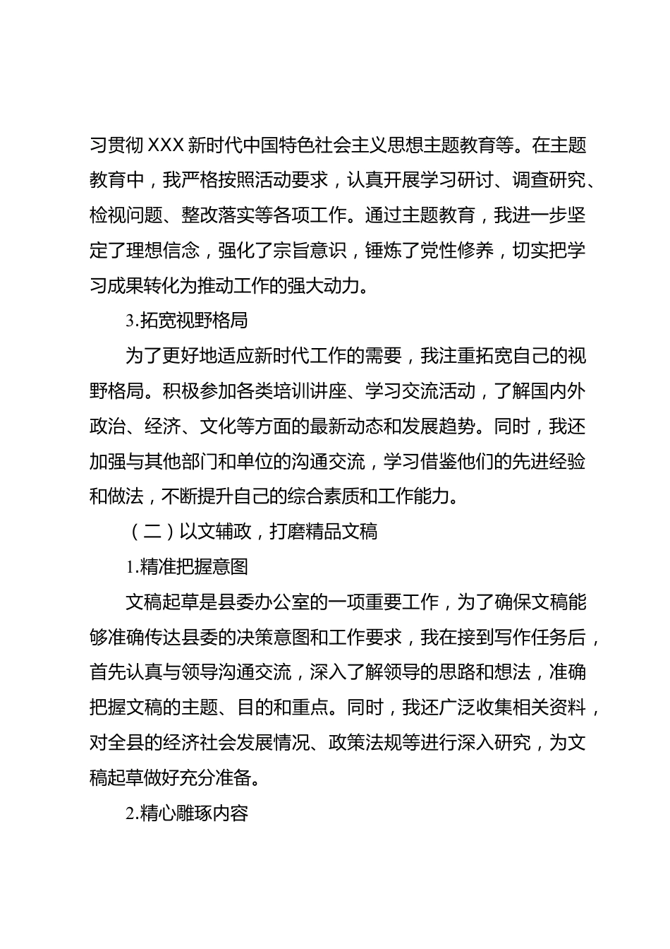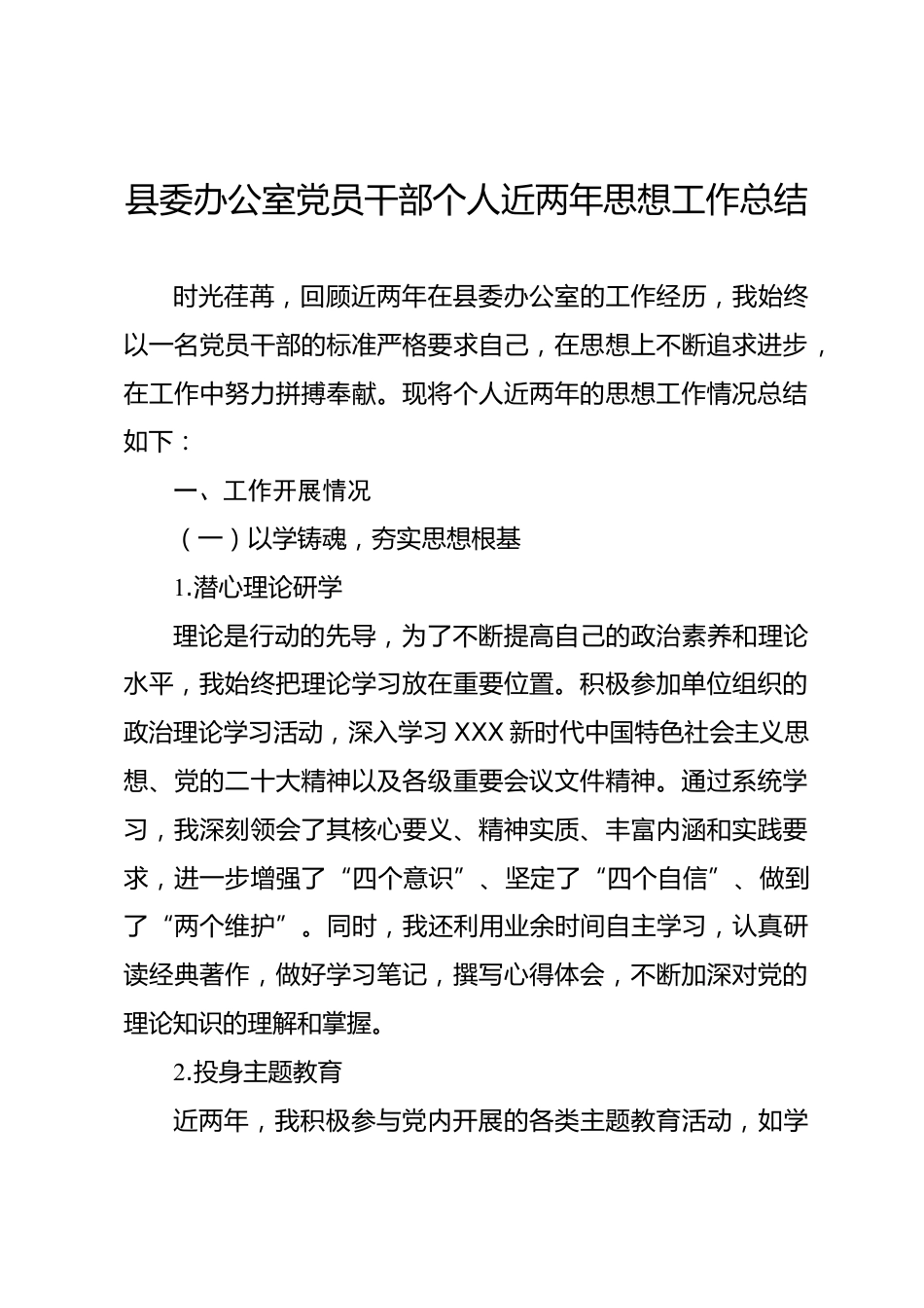 縣委辦公室黨員干部個人近兩年思想工作總結(jié)