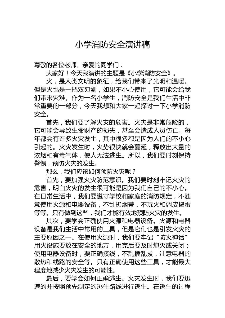 小學(xué)消防安全演講稿