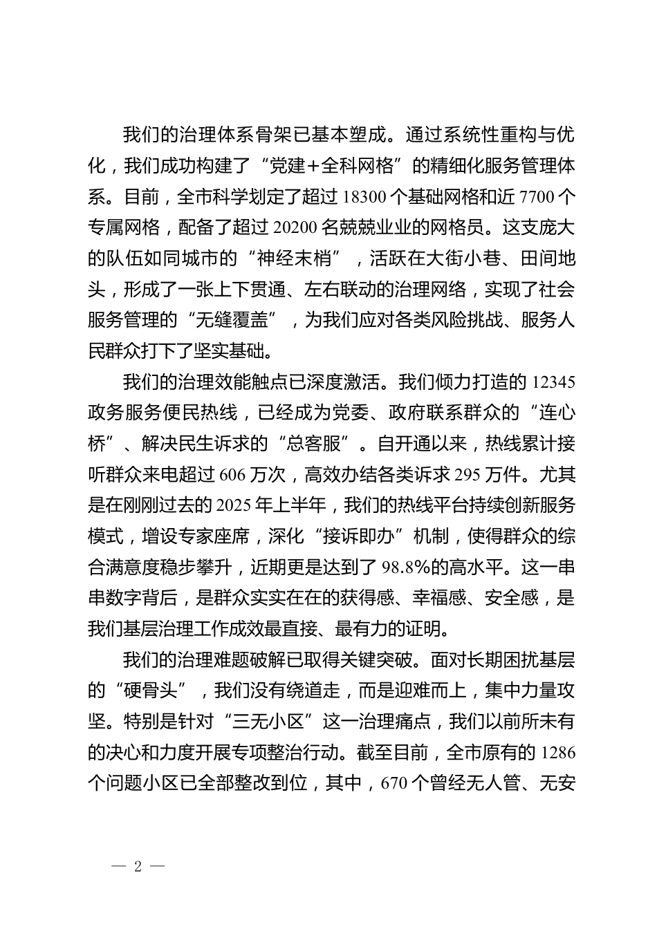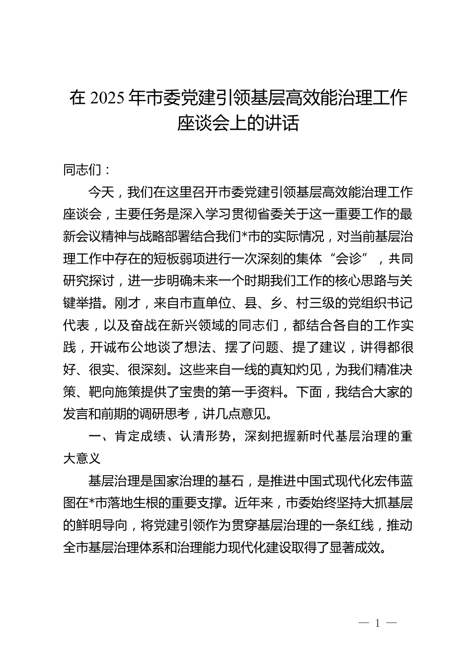 在2025年市委黨建引領(lǐng)基層高效能治理工作座談會(huì)上的講話