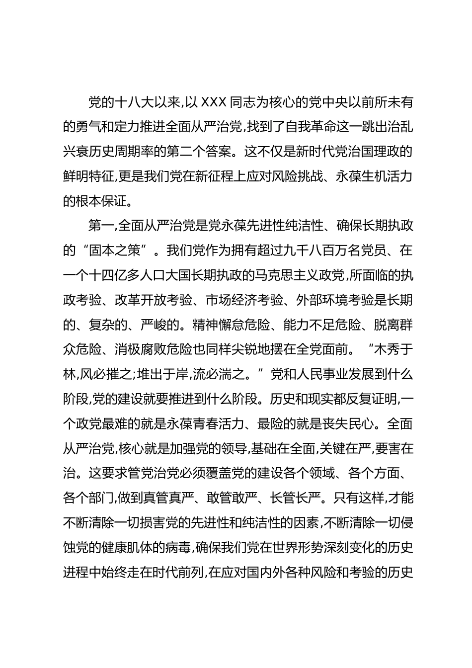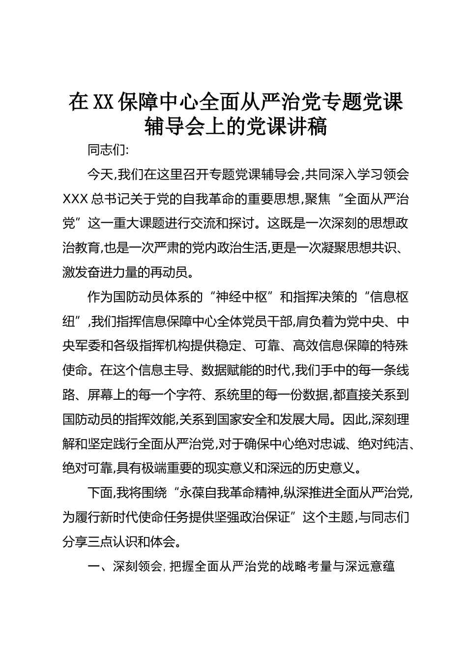 在XX保障中心全面從嚴(yán)治黨專(zhuān)題黨課輔導(dǎo)會(huì)上的黨課講稿