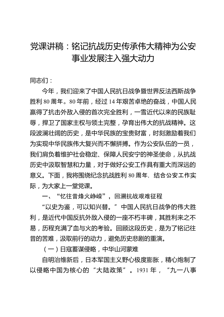 黨課講稿:銘記抗戰(zhàn)歷史 傳承偉大精神 為公安事業(yè)發(fā)展注入強大動力