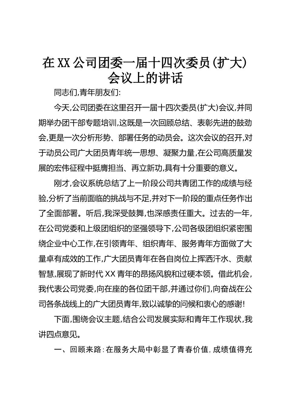 在XX公司團(tuán)委一屆十四次委員(擴(kuò)大)會(huì)議上的講話