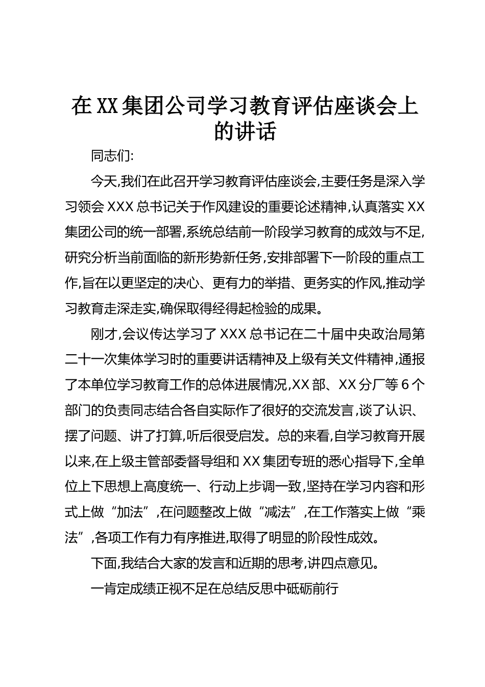 在XX集團(tuán)公司學(xué)習(xí)教育評(píng)估座談會(huì)上的講話