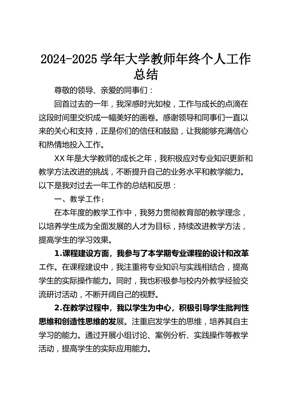 2024-2025學(xué)年大學(xué)教師年終個人工作總結(jié)